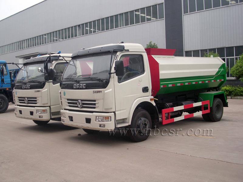 挂桶垃圾车,又称:自装卸式垃圾车,主要用于各市政环卫及大型厂矿部门运载各种生活垃圾。整车由密封式垃圾厢、液压系统、操作系统组成。举升油制缸(2支)垃圾厢可自吊上放下,上下一次工作循环时间≤50S。挂桶垃圾车的特点是一个车能配几十个垃圾桶,能实现一台车与多个垃圾桶联合作业,循环运输,充分提高了车辆的运输能力。