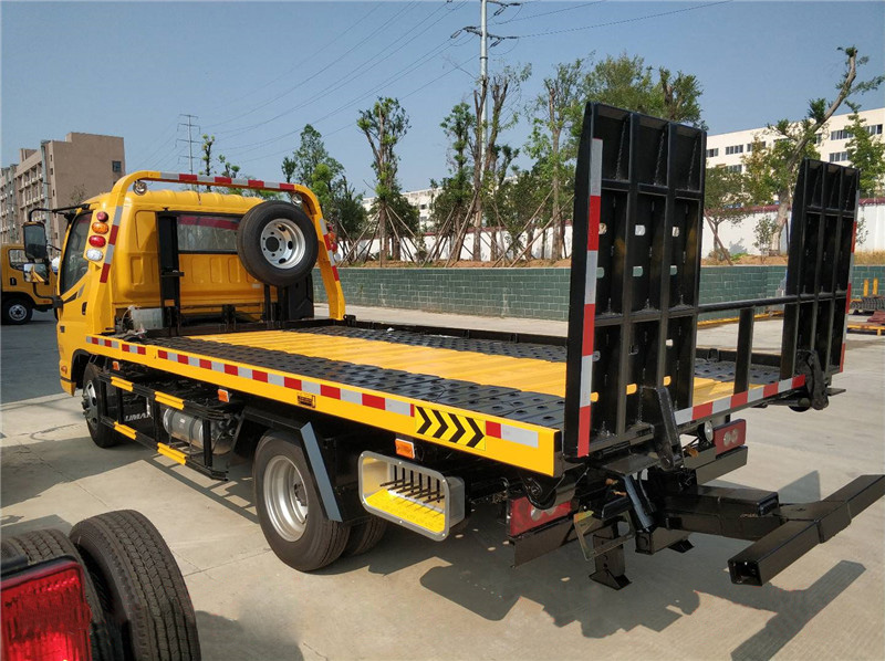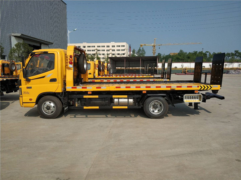 • 底盘采用福田欧马可,底盘型号BJ1049V9JD6-A3, 4X2驱动,轴距3300,康明斯129马力发动机,5档变速箱,7.00R16钢丝胎,板长4.2米,板宽2.3米,带伸缩板或者翻转板,3P2A折叠冲压平板,一拖二型,双侧联动操作装置,后工作灯3只,1个40KN液压绞盘(25米钢丝绳),1个工具箱,1个洗手箱,2个小拖车,L型抱胎架1对,4根捆绑带,托叉1对,托叉座1对,链钩1条。